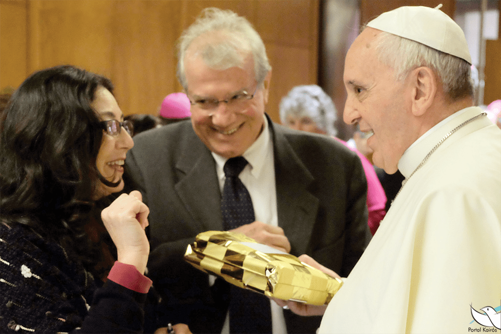 O casal Hermelinda de Sá e Arturo Zamperlini com o Papa Francisco.