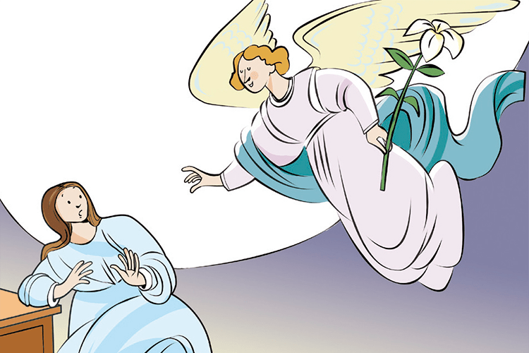 O anjo do Senhor aparece a Maria e a convida a aceitar a proposta de Deus de ser a mãe do Filho de Deus. A primeira saudação do anjo foi de alegria: “Alegre-se, cheia de graça, o Senhor está com você”. O motivo da alegria é que o Senhor está com Maria e deseja nela se encarnar. Diante dessa saudação, a jovem se pergunta qual o significado disso. E o anjo foi esclarecendo aos poucos, até convencê- la a aceitar a proposta: “Eis a serva do Senhor, faça-se em mim como você me disse”. O que acontece em Maria é obra de Deus, mas ele conta com a colaboração humana. Jesus é presente de Deus para a humanidade. A figura de Maria é fundamental nesse processo de Deus de se tornar gente entre os seres humanos. Ele sempre deseja e espera a colaboração de homens e mulheres de boa vontade para realizar seus projetos. O anúncio do nascimento de Jesus se fundamenta no sim de uma mulher simples de uma aldeia da periferia, de onde ninguém espera algo de bom. Jesus se faz presente onde as pessoas o acolhem com simplicidade.